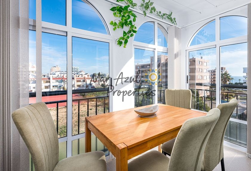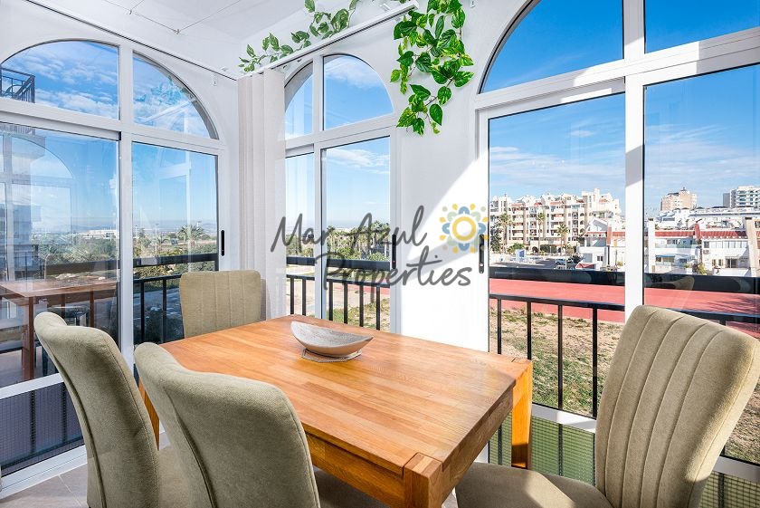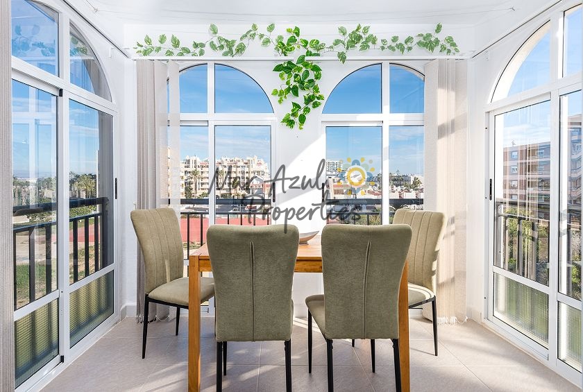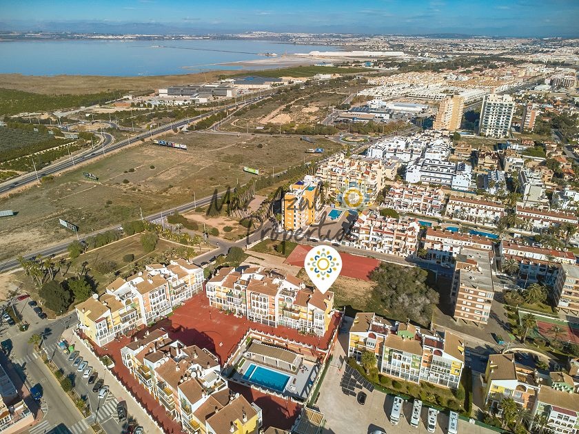 Boligen ligger i et roligt boligområde kun et par hundrede meter fra Middelhavet, med fantastiske kyststier til gåture. Du kan spadsere til centrum af Torrevieja og Marina International, eller gå sydpå mod Punta Prima, Playa Flamenca og La Zenia. Der er fremragende busforbindelser med et busstoppested nede ad gaden. Med bil er du ikke langt fra N332, som fører dig langs hele Costa Blanca-kysten. Gratis parkering på gaden.