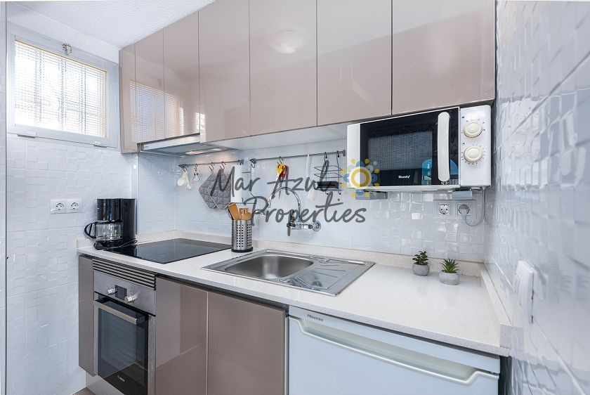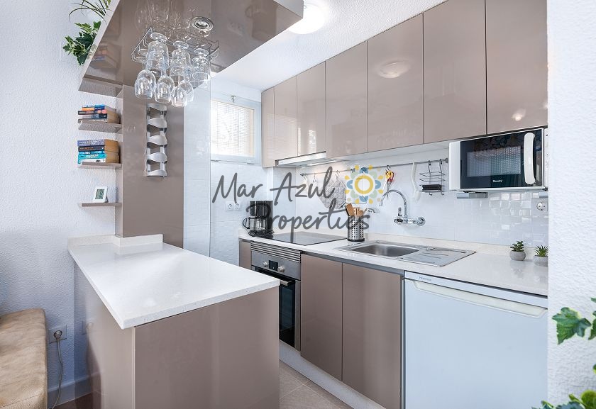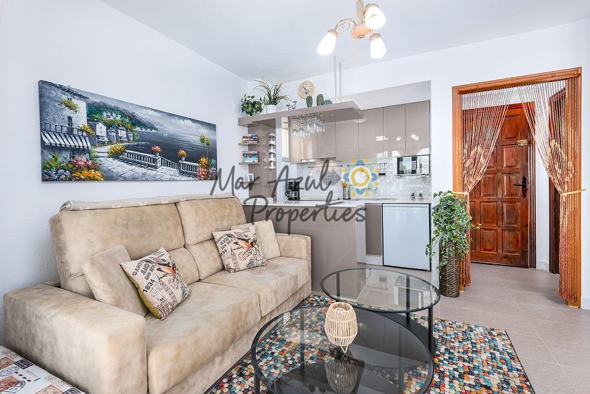 Velkommen til dette meget velholdte, renoverede og moderne studie lejlighed beliggende i den populære urbanisation Eliseos Playa i det sydlige Torrevieja. Kun et par hundrede meter fra havet og med en dejlig havudsigt samt udsigt over saltsøerne og appelsinlundene. Et perfekt sted at holde ferie eller som en ekstra bolig i Spanien, hvis du værdsætter at bo tæt ved Middelhavet og i gåafstand til Torrevieja centrum og bekvemmeligheder som dagligvarebutikker, restauranter, apoteker.